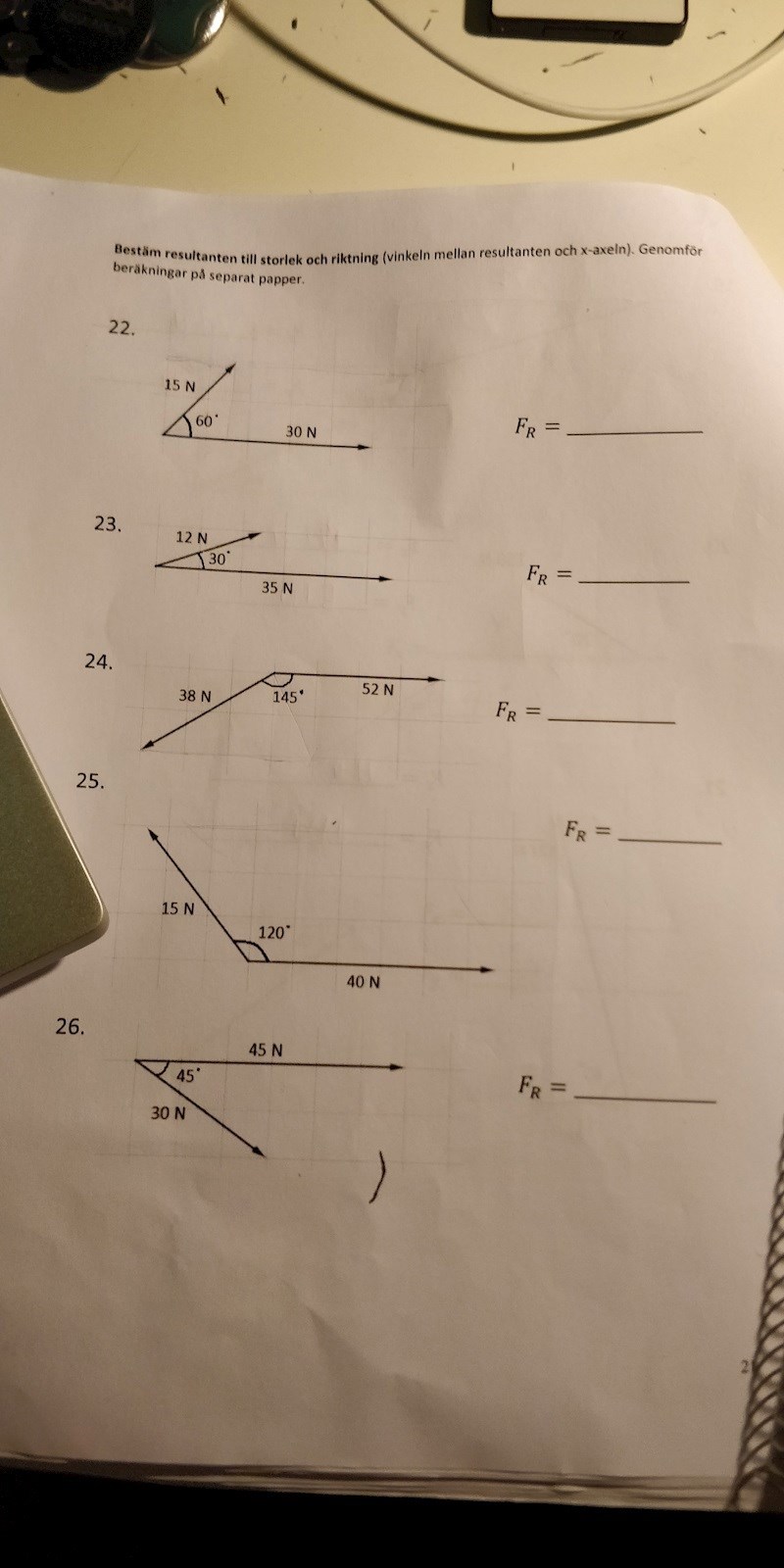 Hur gör jag för att ta reda på följande uppgifter? Behöver inte ha direkta svar utan bara metoder, alltså hur gör jag för att bestämma storlek på resultanter i sånna här uppgifter?