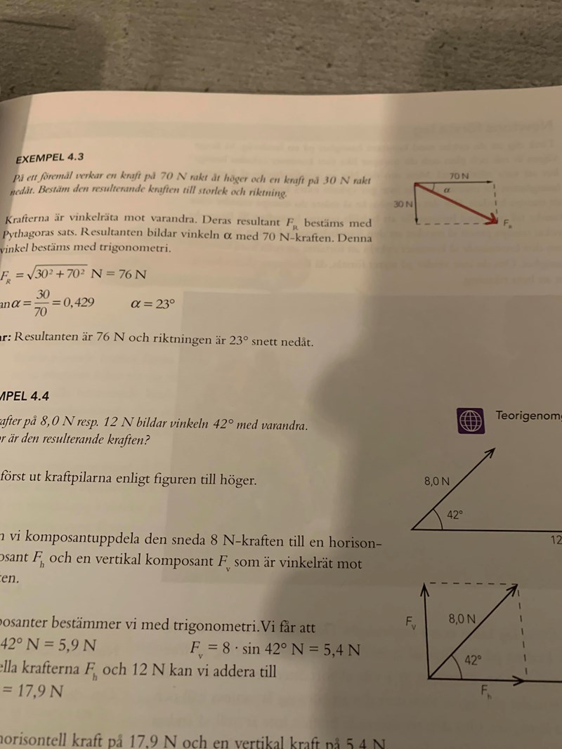 På exempel 4.3 så bildas det en vinkel mellan Fr och 70N. Jag undrar, är det fritt fram att välja? Skulle lika gärna kunna bildas en vinkel mellan Fr och 30N?