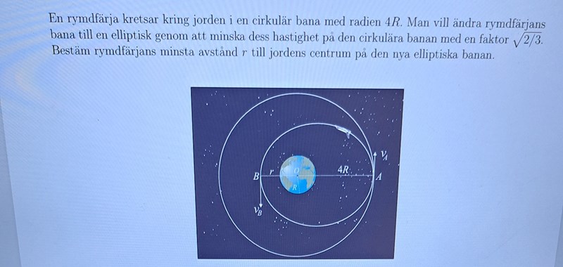 Bestäm rymdfärjans avstånd minsta r till jordens centrum