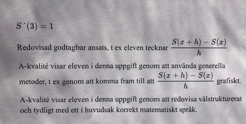 Bestäm S’(3) då S(x+h) = S(x) + h