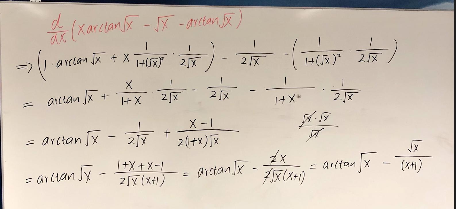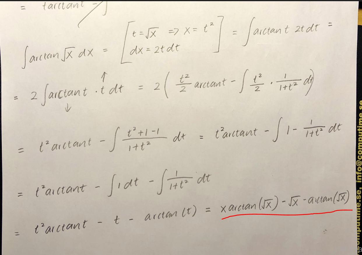Bestäm samtliga primitiva funktioner till arctan(sqrt(x))