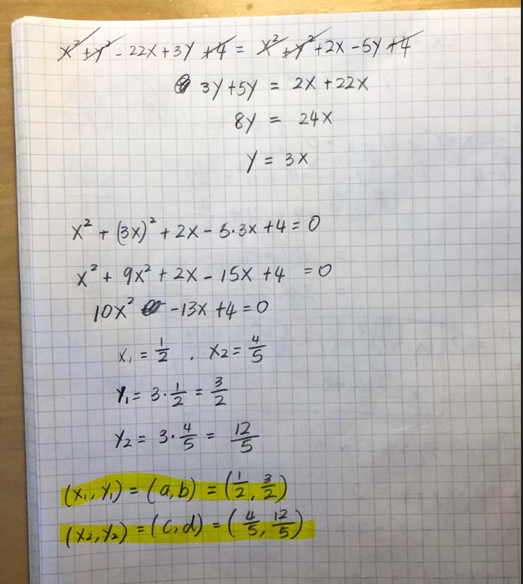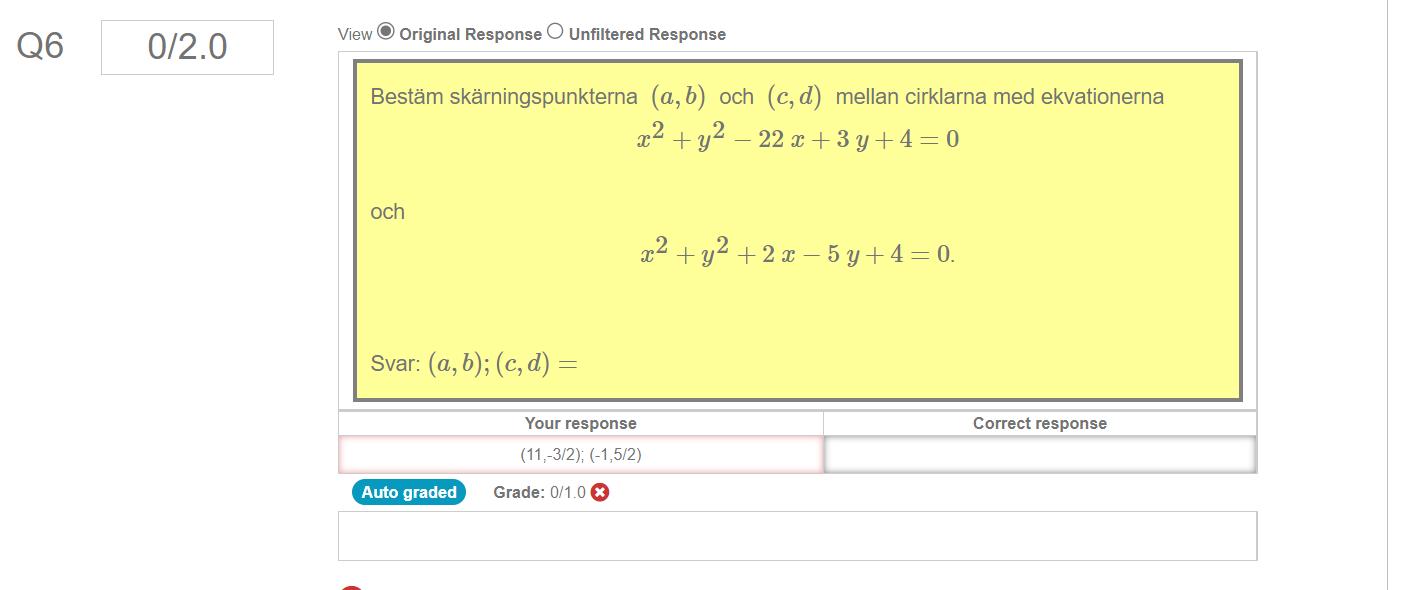Bestäm skärningspunkterna mellan cirklarna med ekv.