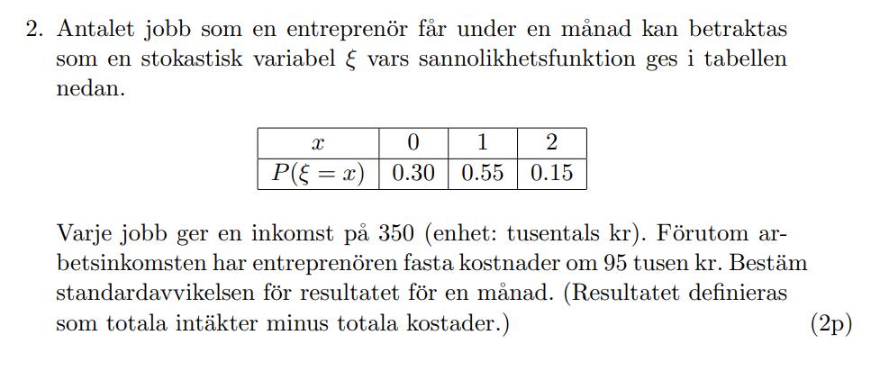 Calle_K skrev:Formeln är Var(x) = E[X^2]-E[X]^2