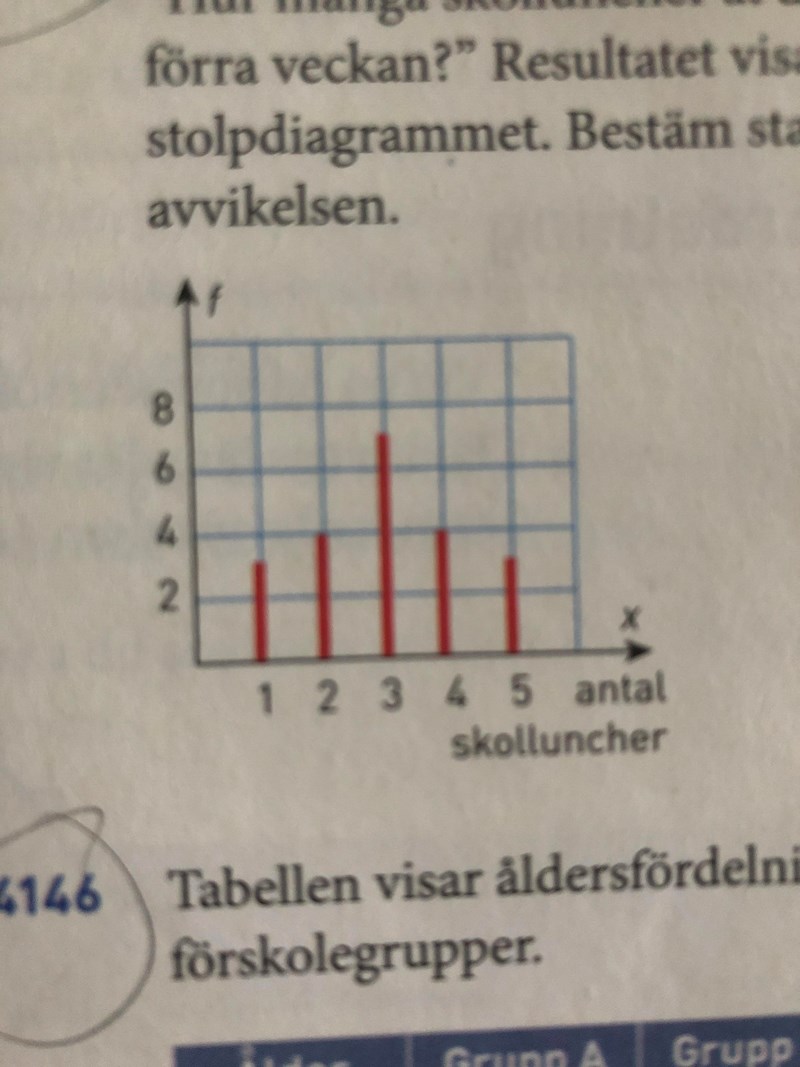 Bestäm standardavvikelsen från förra veckans skolluncher, uppgift 4145 liber ma2c