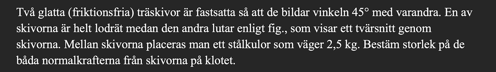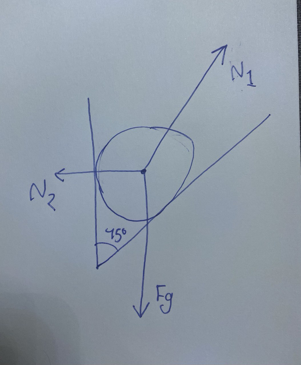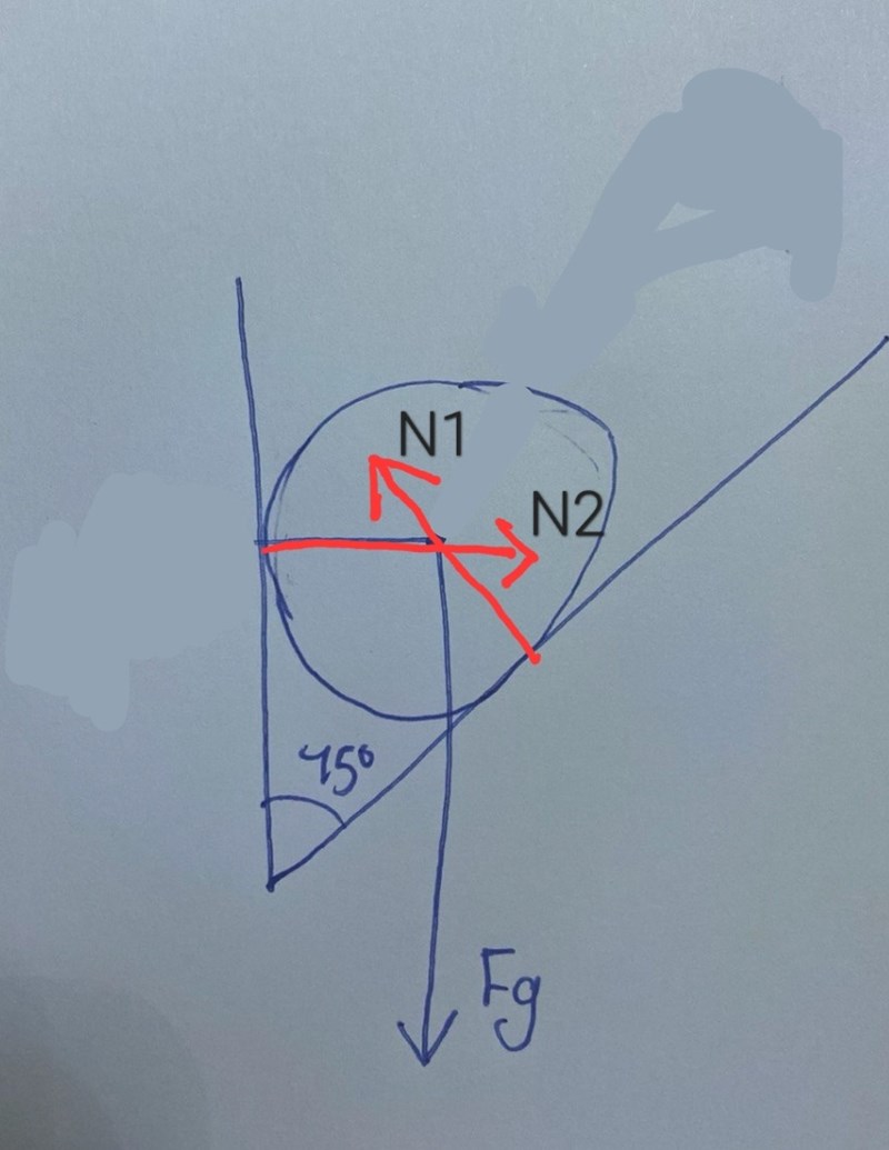 Normalkrafterna ska utgå från och vara vinkelräta mot kontaktytorna mellan stålkulan och väggarna.