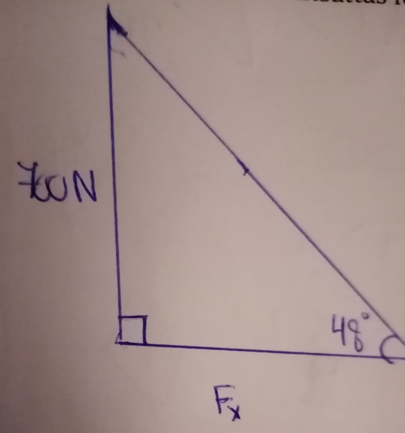 jag kom på att 700N ska vara hypotenusan för jag ska räkna komposten som är vinkelrät mot marken.