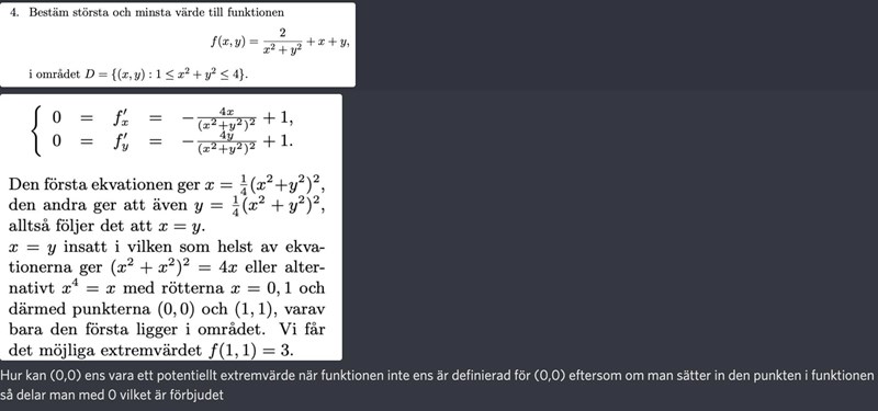 Bestäm största och minsta värde till funktion med två variabler