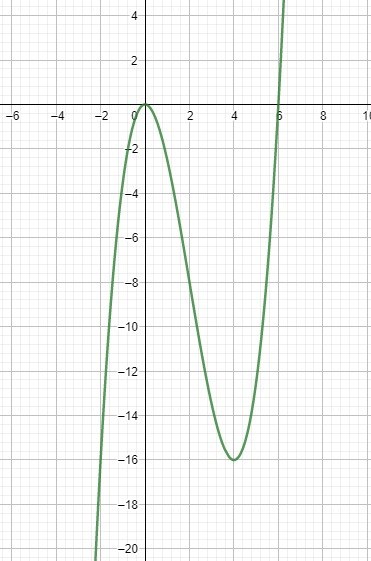 Jag har börjat med att derivera funktionen och ta ut nollställen och får då f '(x) = 1,5x2 - 6x --> x1= 0 x2= 4
