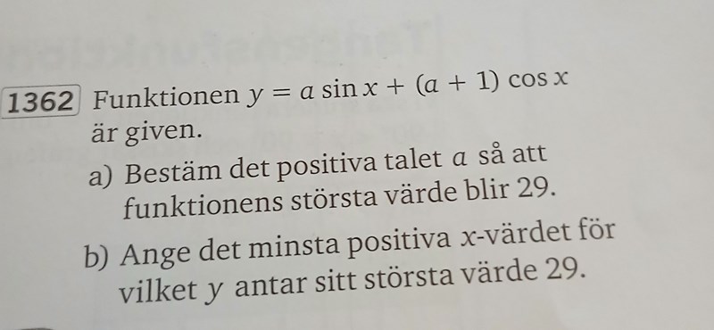 Asså uppgiften var inte så svår. Men, jag undrar kan undvika den formeln, för att alternativt använda enhets cirkeln för att ta reda på när sin resp. cos antar sina maxi/min värden ?