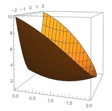 på bilden är radien för halvcirkeln är 2, det får jag från området där x^2+y^2<=4 då lär radien vara 2 eftersom då x eller y är noll så blir maximala radien 2?