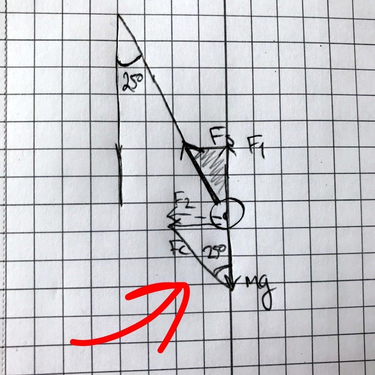 Okej, menar du att jag istället ska rita en triangel med Fc och mg som katet? :) Är det så du menar med upp och ner?