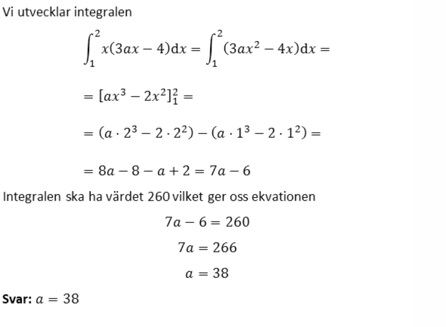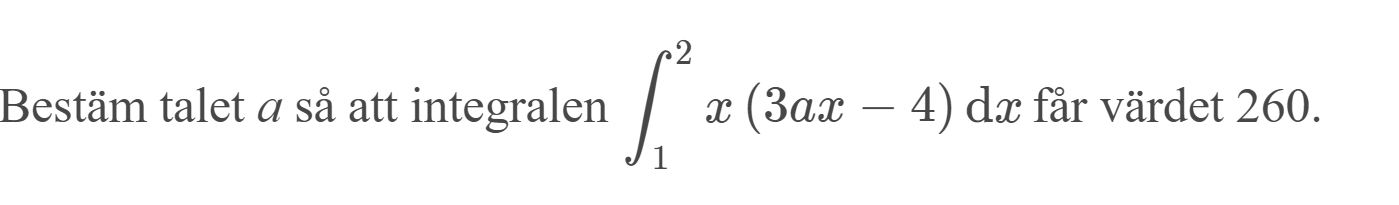 Precis, om du beräknar integralen och sätter den lika med 260 får du en ekvation med en okänd.