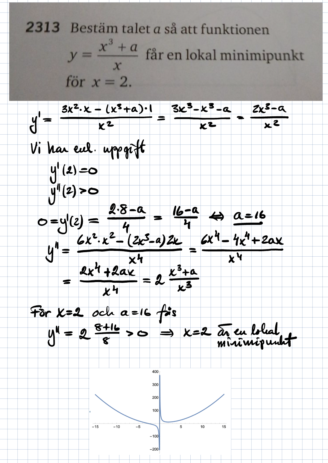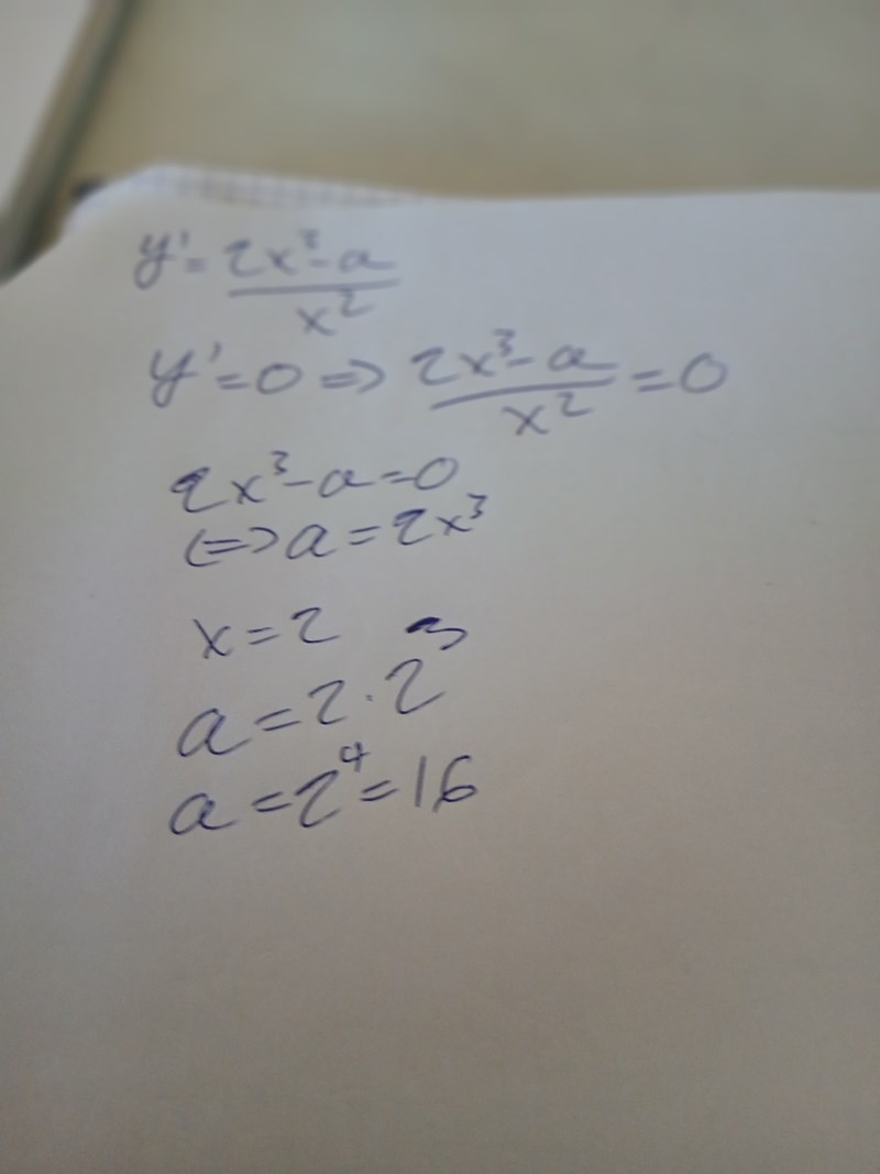 För att ta mig vidare ska sätta y:s derivata lika med noll och på så sätt lösa ut a ?