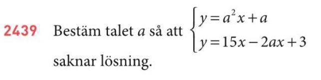 Bestäm talet a, Så att ekvationssystemet saknar lösning.