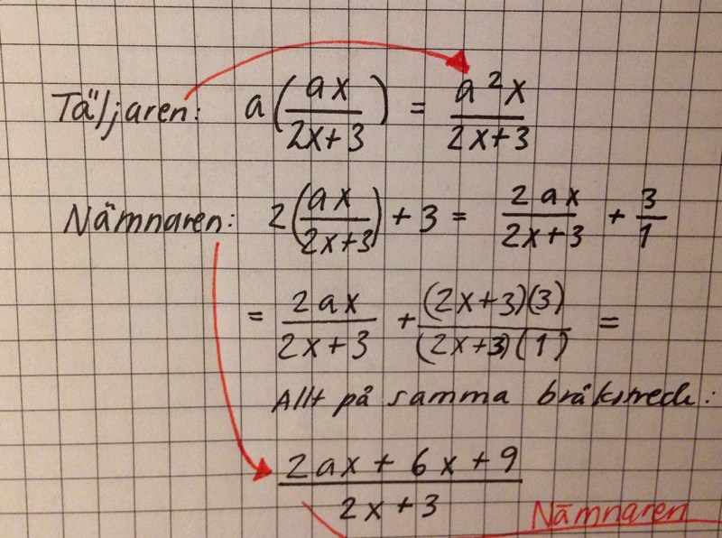Det känns inte alls som att jag är rätt ute, men jag har börjat med att se täljaren för sig och nämnaren för sig och multiplicera in a i täljaren och 2 i nämnaren.
