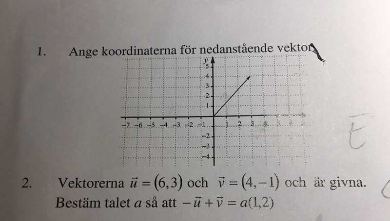 Bestäm talet a så att vektorena -u + v = a(1,2)