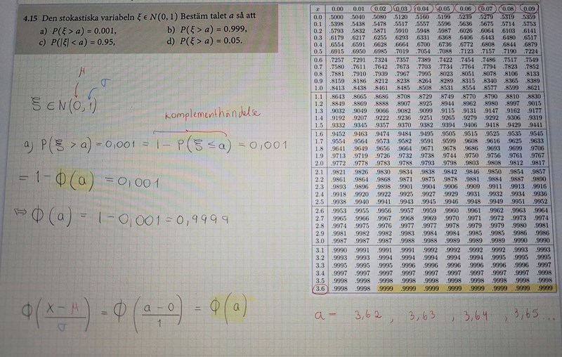 Så jag försöker hitta "a" men när jag sedan ska kolla i tabellen för detta så finns flera alternativ som ger 0.9999 dvs det jag skrivit i rött.