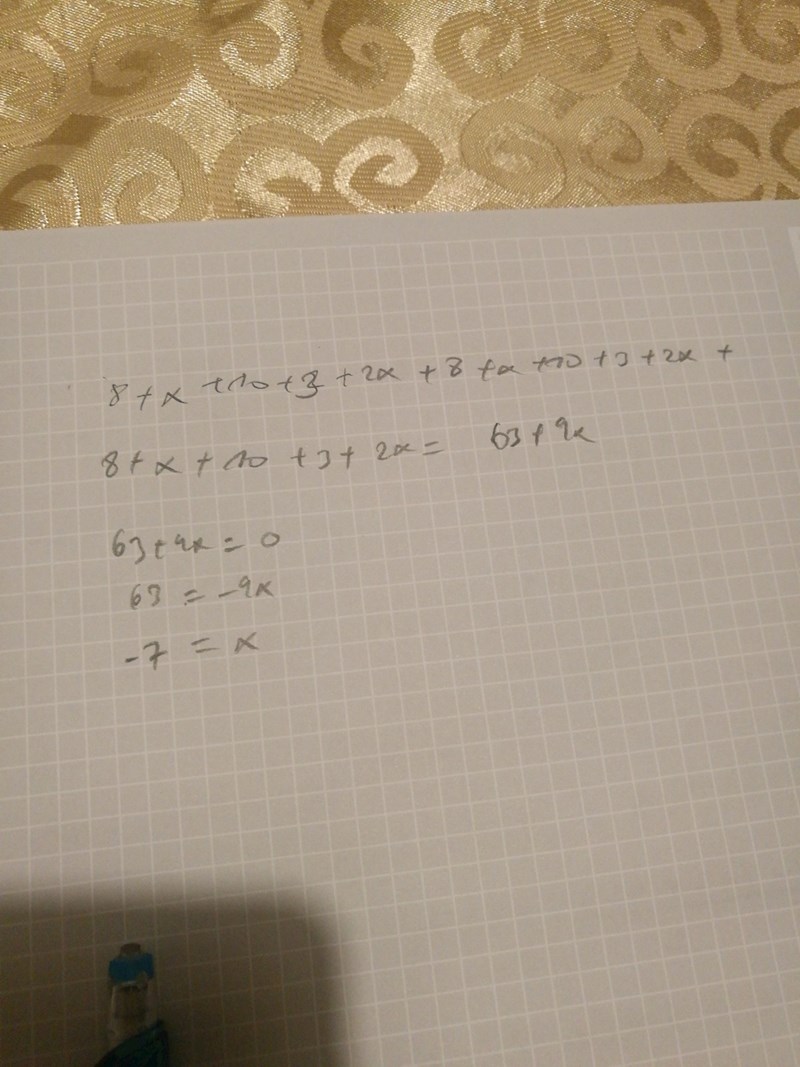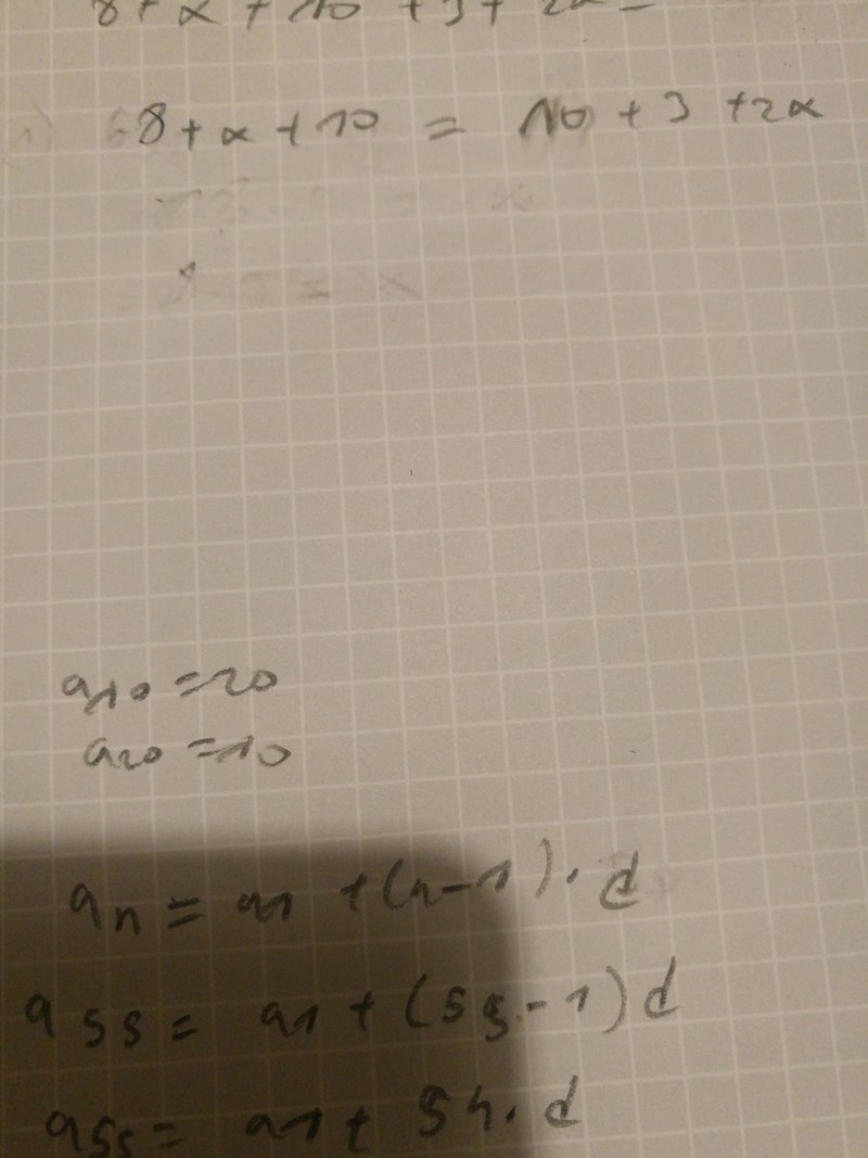 differensen mellan 10 och 8+x måste vara samma som differensen mellan 3+2x och 10