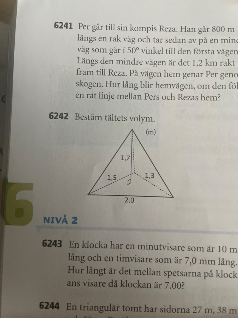 Jag vet inte hur jag ska lösa denna jg började med cosinusasten för att få ut vinkeln men då får jag vinkeln 90 . Sin 90 är 1 då är 1x1,3x1,5\2 x1.7 0,977m3 men facit säger 0,55m3