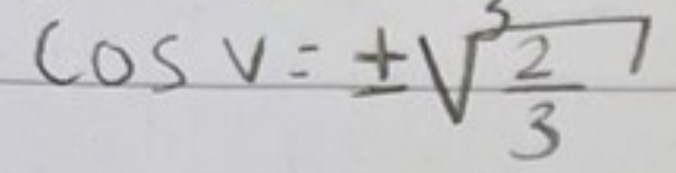 Men jag undrar varför det kommer finnas två olika värden på tan v? Är det för att vi fick två värden på cos v? Dvs två vinklar i en enhetscirkel som ger samma cosinus värde