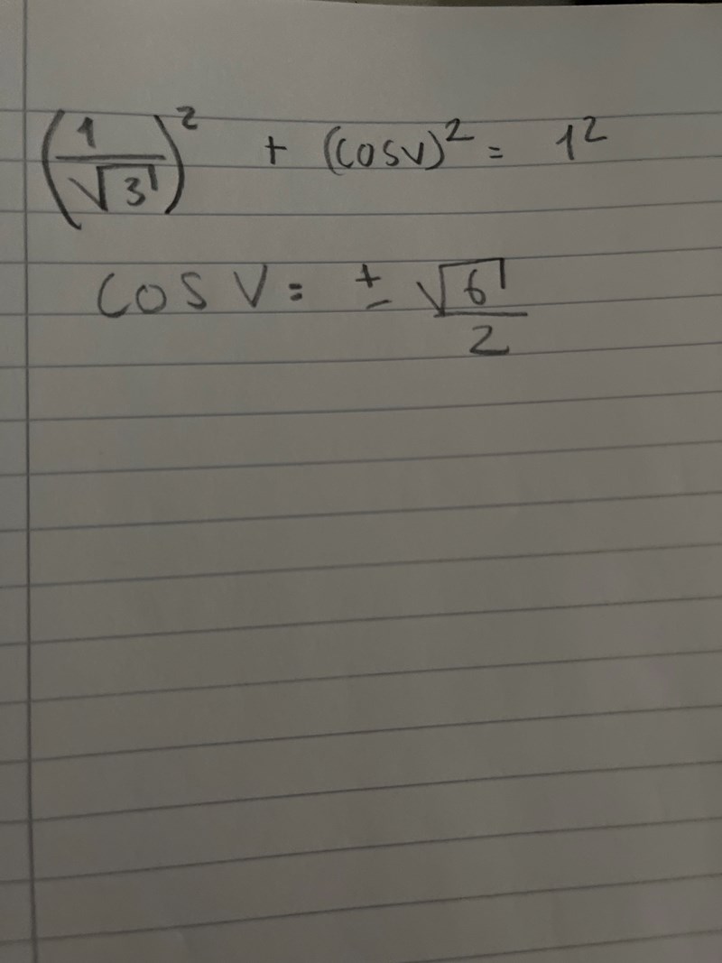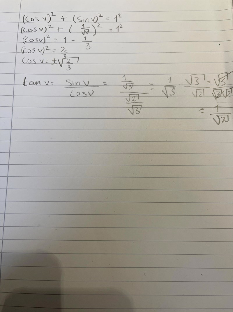 Du behöver ingen miniräknare, det räcker med trig.ettan (för att få fram cos(v)) och definitionen av tan(v).