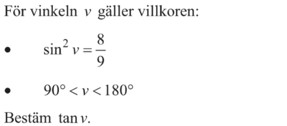 V är i intervallet 90-180 grader. Är sin plus eller minus där?