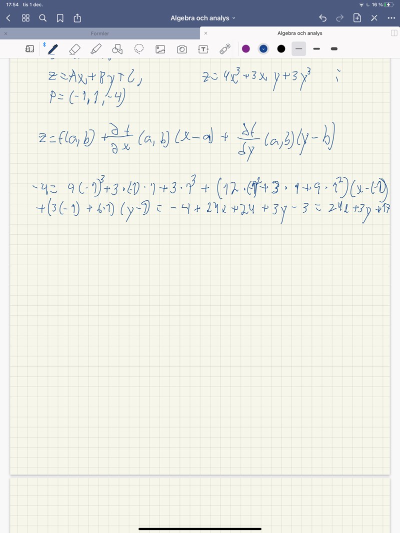 Du har kommit fram till rätt taylorutveckling, men sen verkar blanda ihop x,y,z med punkten (a,b)