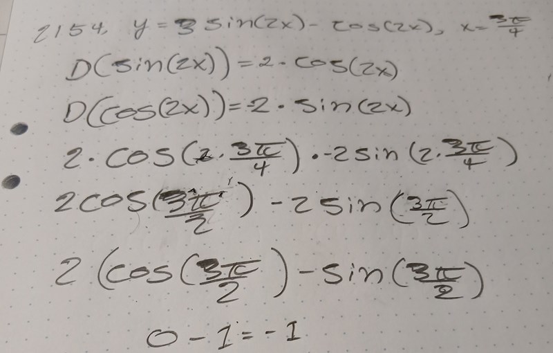 Då är y'(x) = 3*2*cos(2x)-(-2*sin(2x)) = 6cos(2x)+2sin(x)