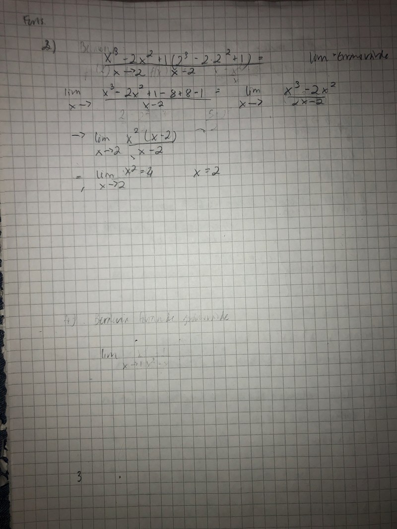 Jag är inte riktigt säker på alla steg, men det är rätt att räkna med lim (gränsvärde). Så jag ställer upp uträkningen som jag gjort den. Följ uträkningen och fråga om något är oklart. Tanken är att man tittar på två punkter, (x,f(x)) och (2, f(2)), som ligger nära varandra, och så låter man x närma sig 2.