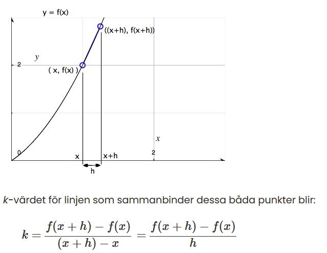 Så här får man fram lutningen med hjälp av derivatans definition.