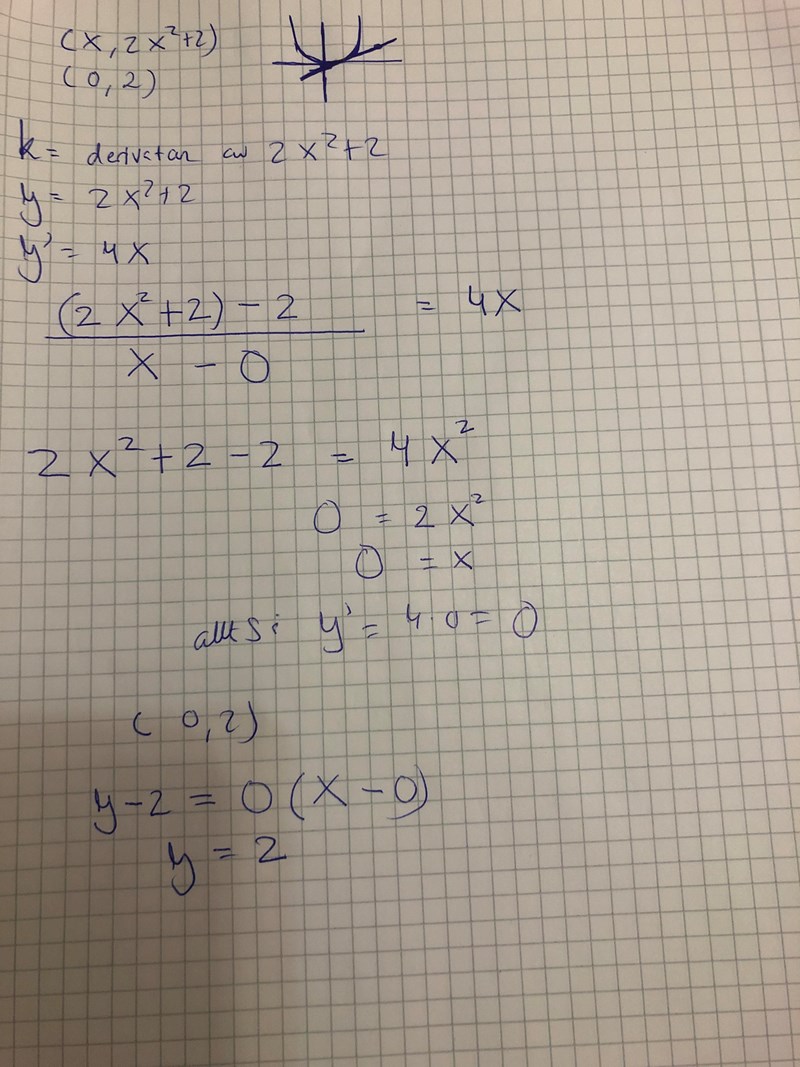 Nejdå, det stämmer bra att värdet för tangenten i är lika med . Du har mycket riktigt beräknat tangentens ekvation till .