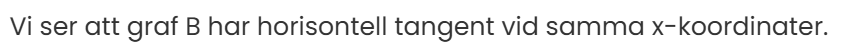 Vi ser att graf B har horisontell tangent vid samma x-koordinater.