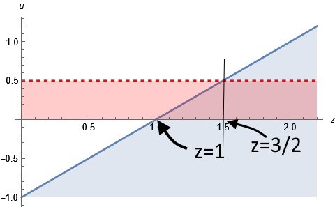 Men jag ser inte hur z=1 och z=3/2. Löser man någon ekvation? Jag antar att u=y och x=v?