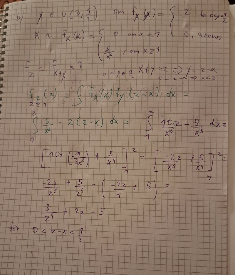 Ja asså jag förstår inte hur man kommer fram till att z>=3/2 samt 1<=z<=3/2. Det kanske kommer från definitionsmängd eller värdemängd tankesätt som inte nämns i lösningen (oklart). Du pratar om utfallsrum för X och Y, jag är lite osäker på vad du menar med det. Innebär utfallsrum typ värdemängd elr definitionsmängd? X är [1,inf) och Y[0,1/2]. Då är väl Z =[1,1/2] U [1/2, inf)? Jag kan vara ute och cyklar men det är kanske så de resonerar.