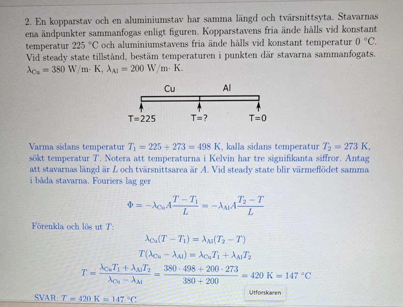 Bestäm temperaturen i punkten där stavarna sammanfogats