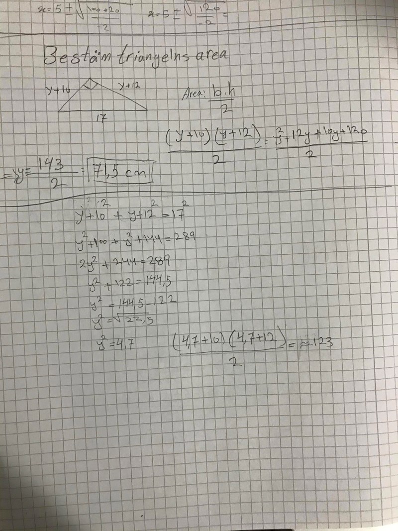 jag tänker också att summan av y2+22y+120 dividera i 2 blir 71,5