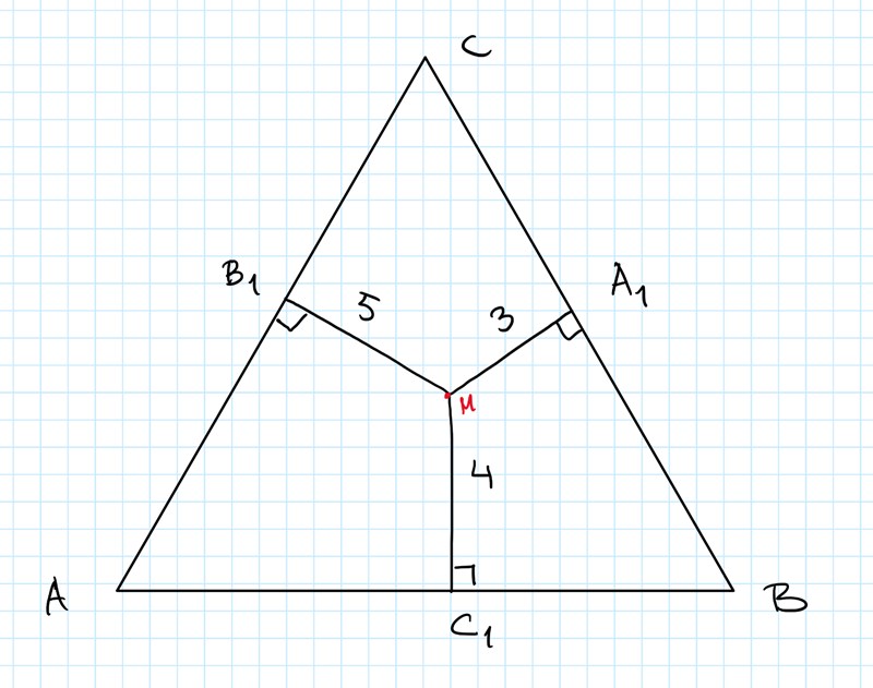 punkt E till de tre kanterna, dvs E är den liksidiga triangelns mittpunkt.