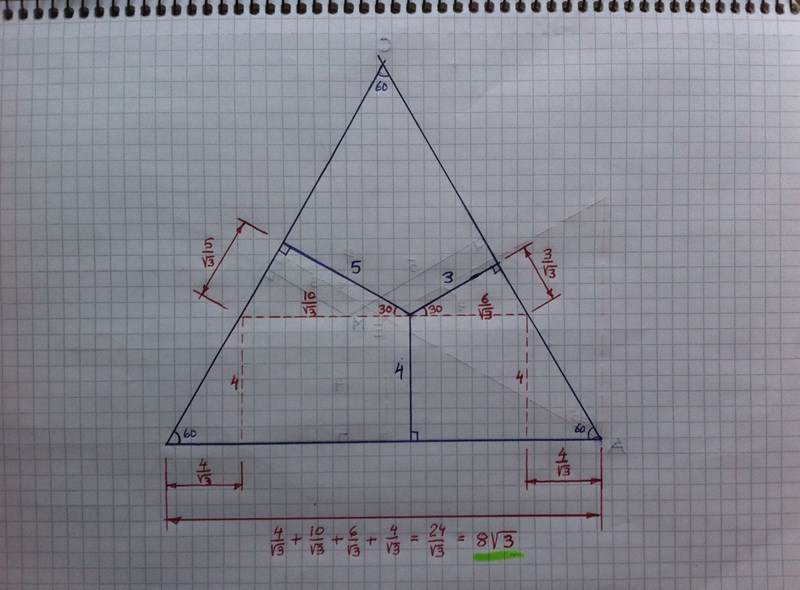 Nu är det lätt att visa att E-A är 8 l.e. och  halva A-C  4·3