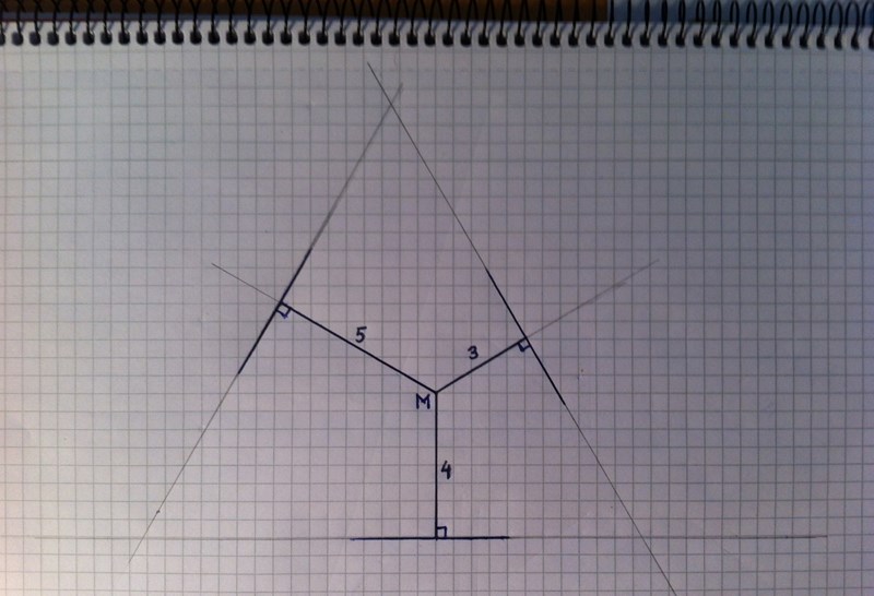 och om du räknar rätt. Börja rita inifrån, från punkten M, och fyll i den liksidiga