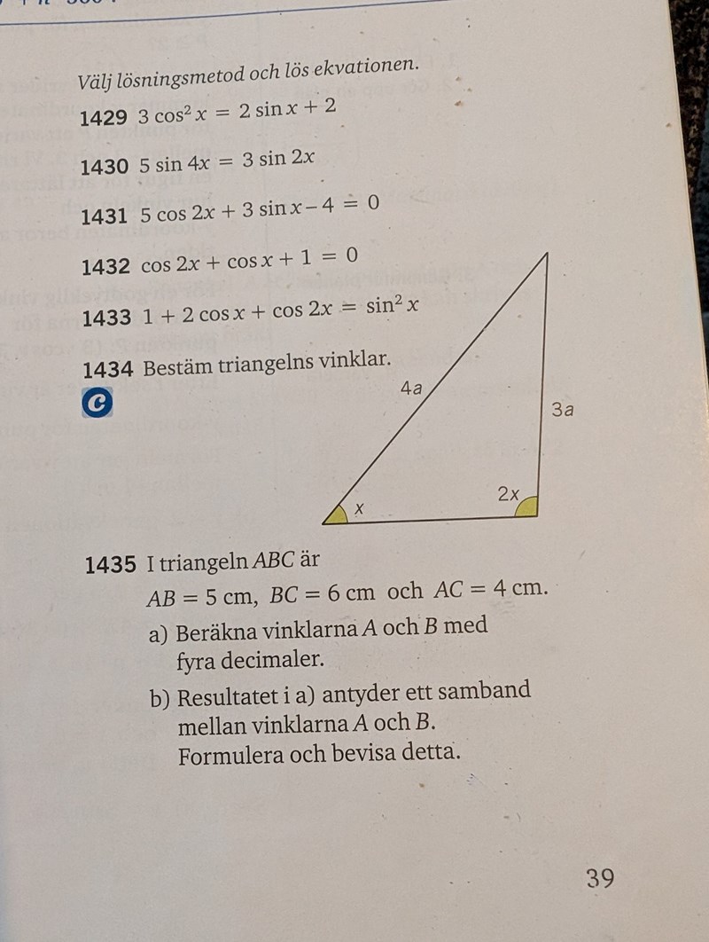 Jag gjorde faktiskt så och fick fram efter mycket om och men att sinx = 90° -2a/3a