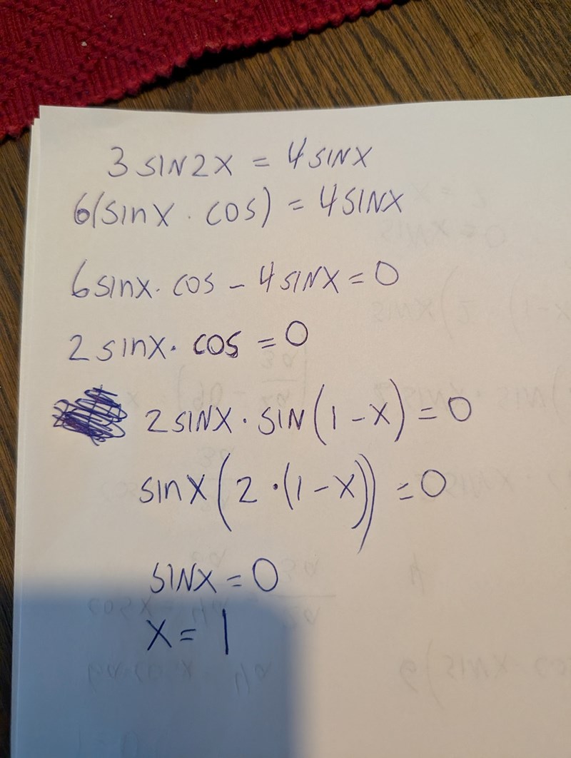 Men Sin2x + sinx + sin(180-3x) = 0 borde stämma? Summan måste ju bli 180°, det vill säga sinx = 0.