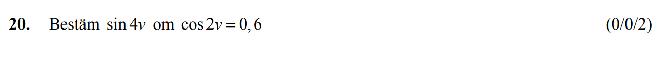 I så fall är formeln för sinus av dubbla vinkeln samt den trigonometriska ettan högst relevanta. Det kanske blir enklare att se hur dessa ska användas om du börjar med en enkel substitution: . Efter den här substitutionen så lyder uppgiften: