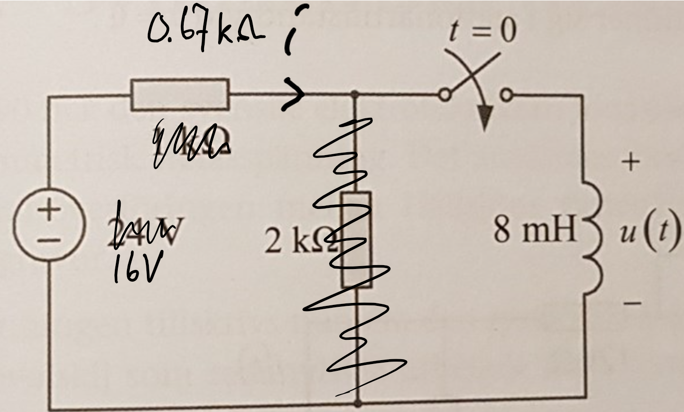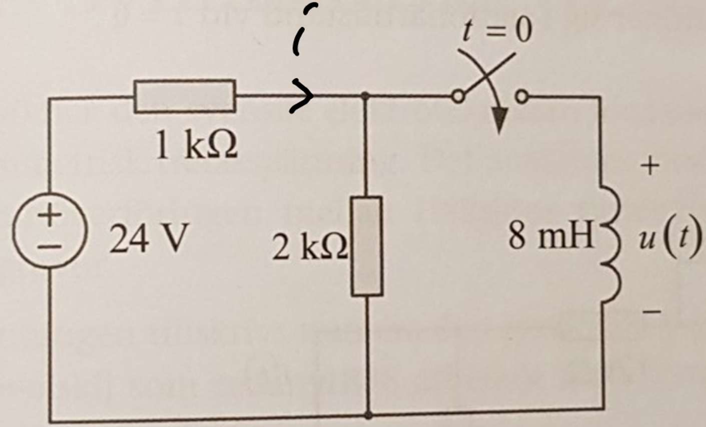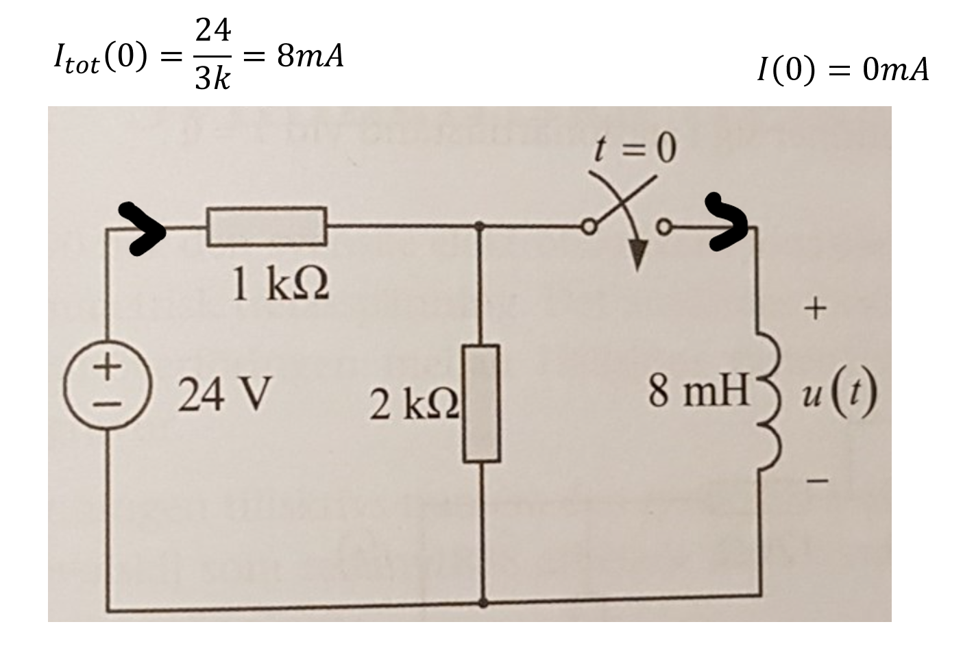 Det jag menar är att du kan inte räkna med ett begynnelsevillkor på strömmen i ursprungskretsen, eftersom det är inte den ström som går genom induktansen (begynnelsvilkoret på denna ström är 8mA vid t=0).