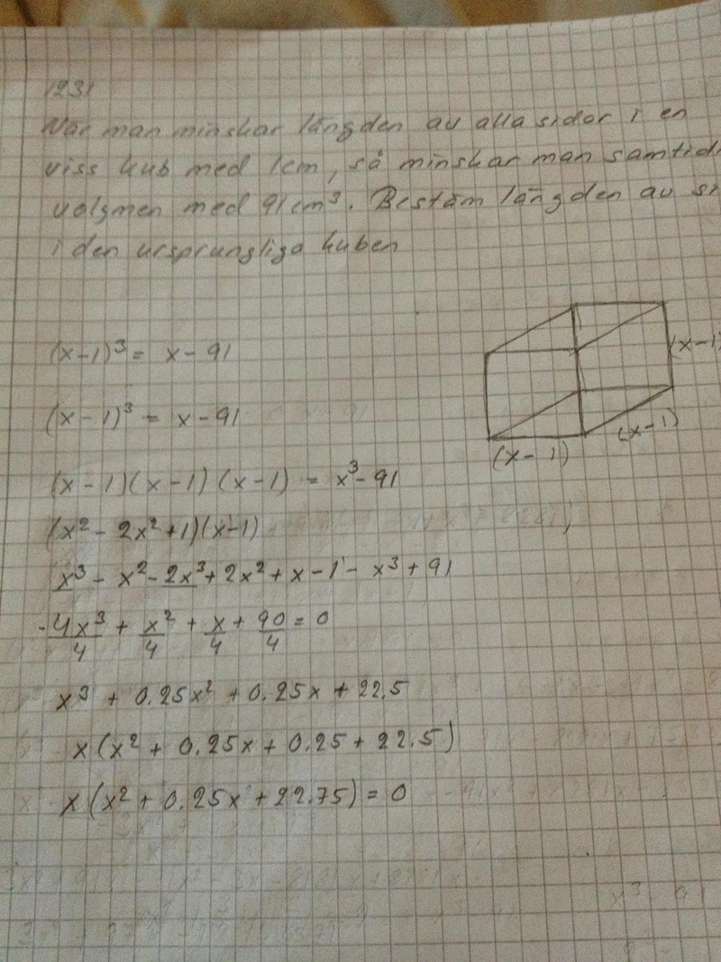Då ska jag försöka räkna ut detta. Det ser ut att tredje grads ekvation, men jag tror att x^3 tar ut varandra. Vi får se, vad som händer.