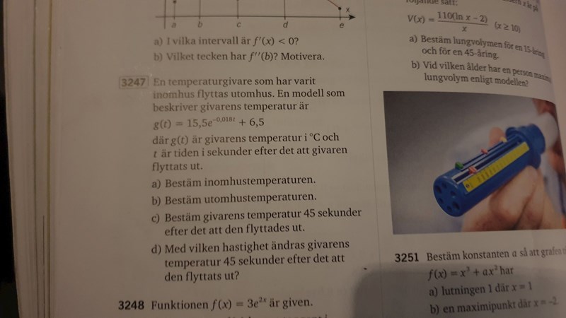 i a) ser man att om t=0 är g(t)=15,5+6,5=22 grader. Vid tiden 0 är det inomhustemperaturen.