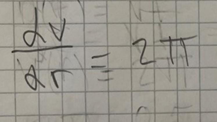 dVdr=2πr = 4πdrdt=0.5tOm vi sätter in alla värden och dVdr×drdt blir det:4π×0.52=π