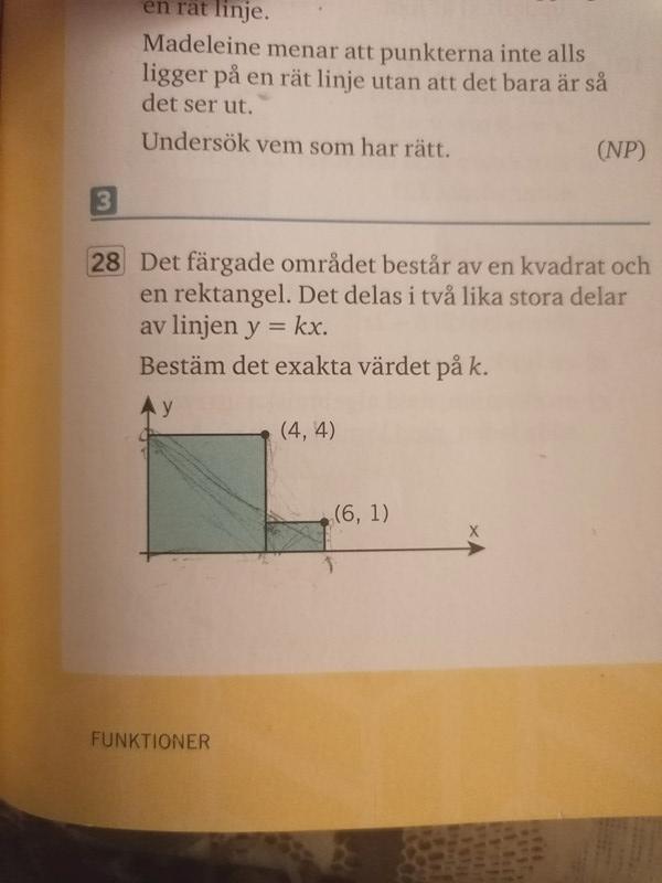 tetris skrev:om k = 1 delar vi kvadraten i hälften vilket vi då vet inte blir lika stora delar, utifrån det vet vi då att k måste vara < 1.