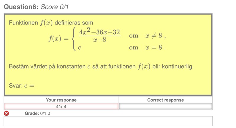 Polynomdividerade med x-8 och fick 4x-4. Varför är det fel?