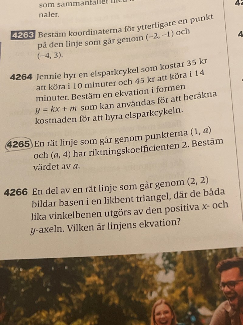 Men jag har redan riktningskoefficienten det står i uppgiften
