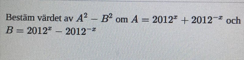 Bestäm värdet av A^2-B^2 med följande ekvationer.
